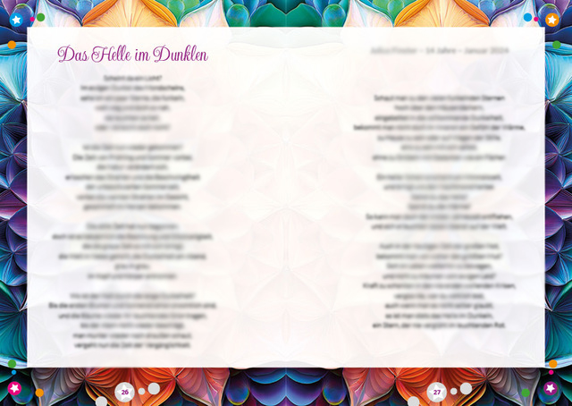 Qualität: stabiles Hardcover, hochwertig verarbeitet, mit ansprechendem Layout und klarer, gut lesbarer Typografie, liebevoll gestaltete Sammlung von Geschichten und Gedichten junger Autorinnen und Autoren